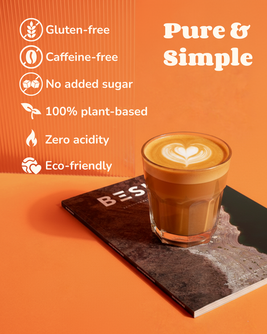 La chicorée torréfiée, c’est comme le café… mais sans caféine et avec une vibe plus douce. On prend la racine de chicorée, on la torréfie (un peu comme les grains de café), et bam ! Ça donne une boisson aux notes de noisette, caramel et chocolat, hyper réconfortante et parfaite pour toutes celles et ceux qui veulent réduire leur conso de caféine sans sacrifier le goût.